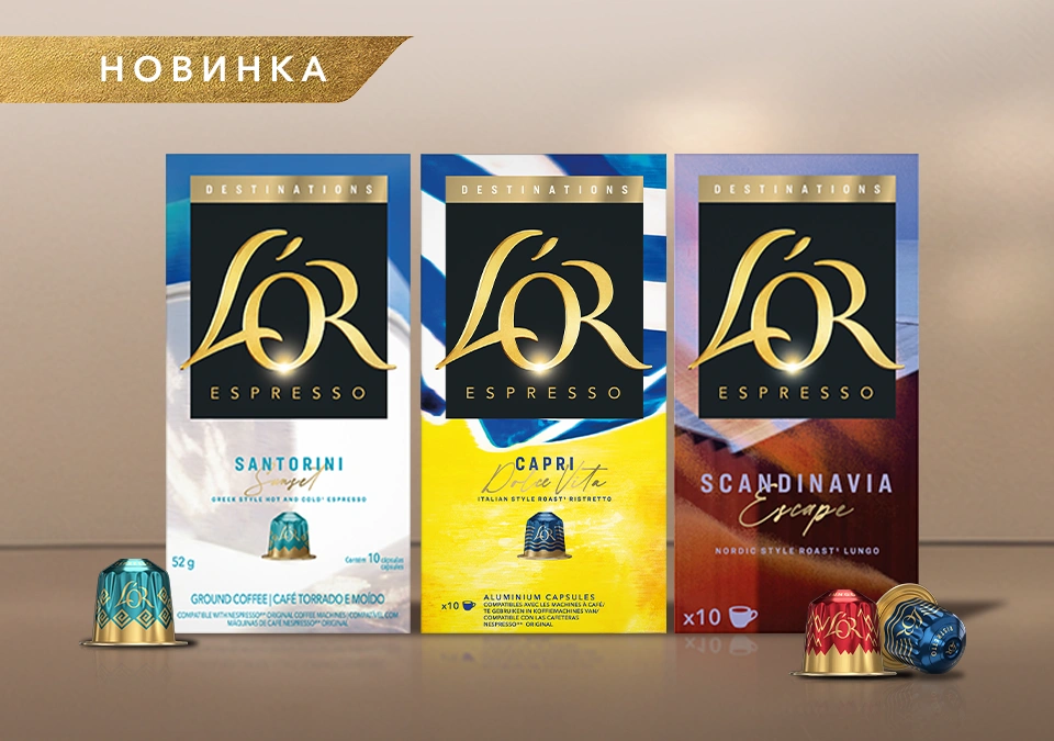 Вирушайте у смакову подорож з L'OR Destinations — розкішне Капрі, сонячне Санторіні та затишна Скандинавія в кожній чашці. Три нові бленди, натхненні найкращими куточками Європи.